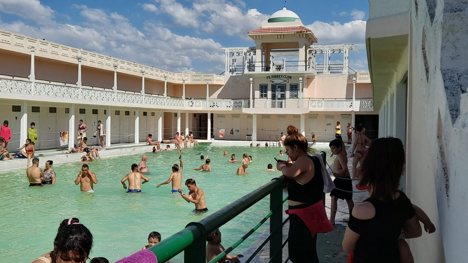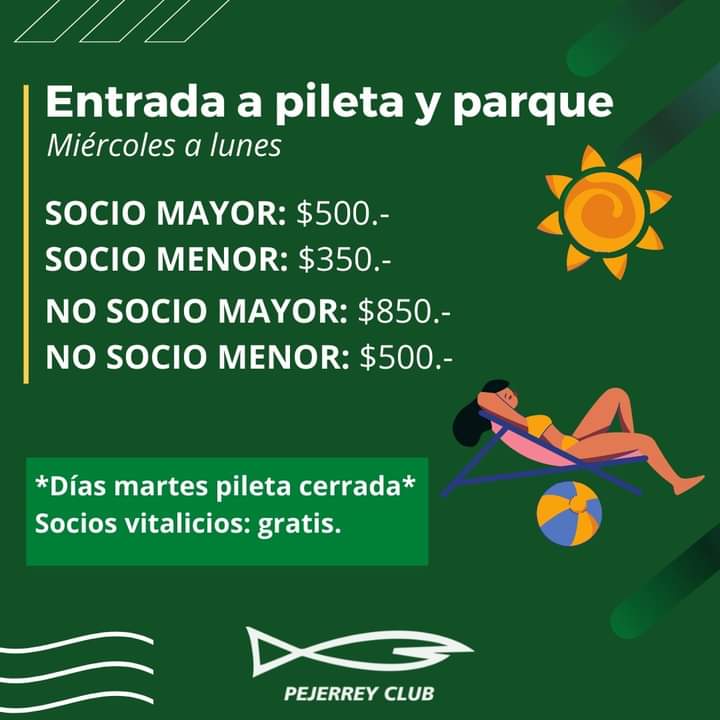 Las piletas de agua salada son la particularidad del Pejerrey. El agua proviene de las napas que están a una profundidad de 20 metros bajo el nivel del río, y se extrae mediante una bomba en el sector del Parque.