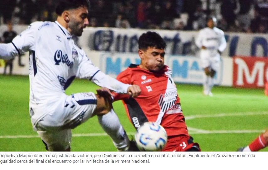 (CIQ) – Quilmes igualó 2 a 2 en el Centenario ante Deportivo Maipú y estiró a nueve su racha de partidos sin conseguir la victoria. Abrió la cuenta Pío Bonacci (de penal) para el Cruzado en el primer tiempo. En el complemento, el Cervecero lo dio vuelta con tantos de Juan Capano y Gabriel Aranda. De cabeza, Luciano Paredes igualó el partido.