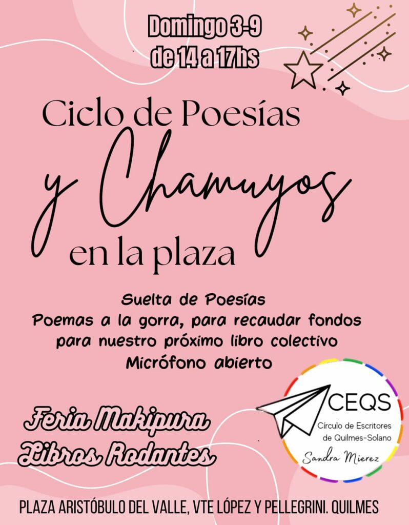 El domingo 3, en la Plaza Aristobulo Del Valle, lectura de poemas a todo micrófono, con el Círculo de Escritores de Quilmes – Solano. Habrá música, feria, desde las 14, una tarde para matear y disfrutar!