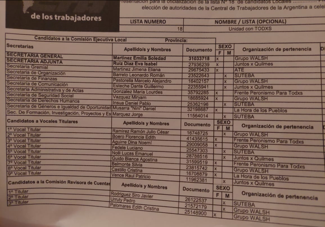 Como ya se anticipó en este CIQ, la Central de trabajadores de Argentina, CTA, tendrá sus elecciones el 9 de noviembre.