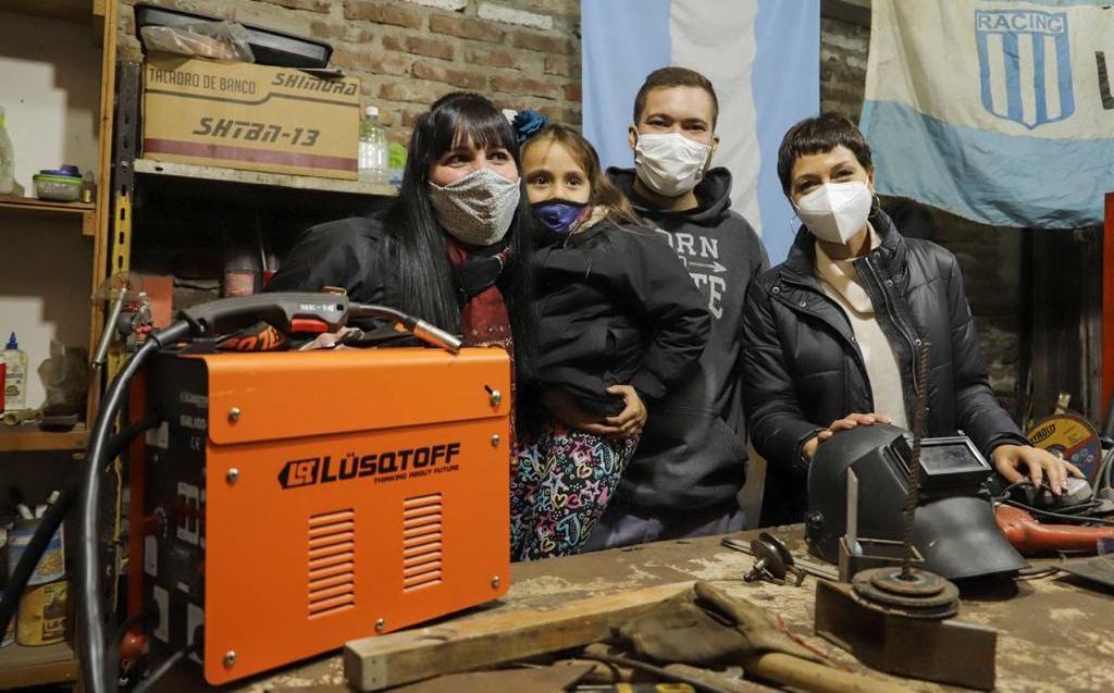 La jefa comunal visitó a Rodrigo Mattivi en su taller de herrería de Bernal Oeste, quien adquirió nuevos elementos de trabajo para su proyecto a través del programa nacional «Banco de Herramientas, Maquinarias y Materiales», impulsado desde el Ministerio de Desarrollo Social de la Nación y articulado en conjunto con la Municipalidad.