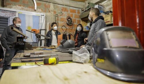 La jefa comunal visitó a Rodrigo Mattivi en su taller de herrería de Bernal Oeste, quien adquirió nuevos elementos de trabajo para su proyecto a través del programa nacional «Banco de Herramientas, Maquinarias y Materiales», impulsado desde el Ministerio de Desarrollo Social de la Nación y articulado en conjunto con la Municipalidad.