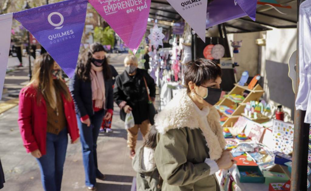 Funcionarias recorrieron este domingo y lunes la tercera edición de la feria «Mujeres a Emprender en Red», una propuesta comunal que reunió a más de 40 emprendedoras quilmeñas en la plaza San Martín, ubicada en Mitre y Rivadavia, en Quilmes Centro, donde comercializaron sus productos al aire libre bajo estrictos protocolos sanitarios por la pandemia del coronavirus COVID-19.
