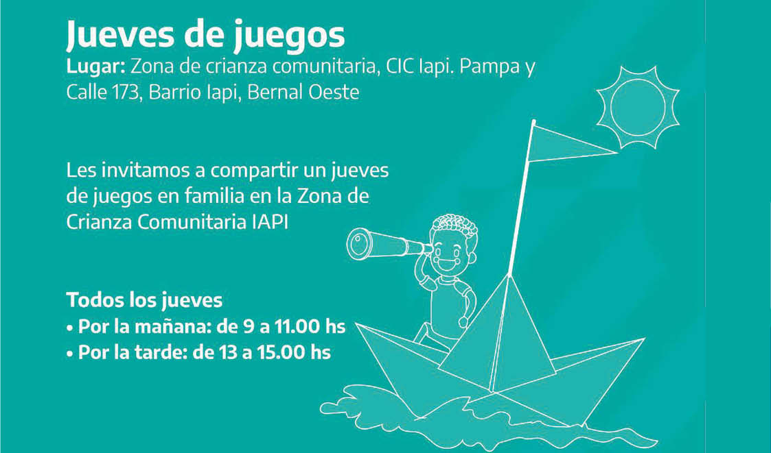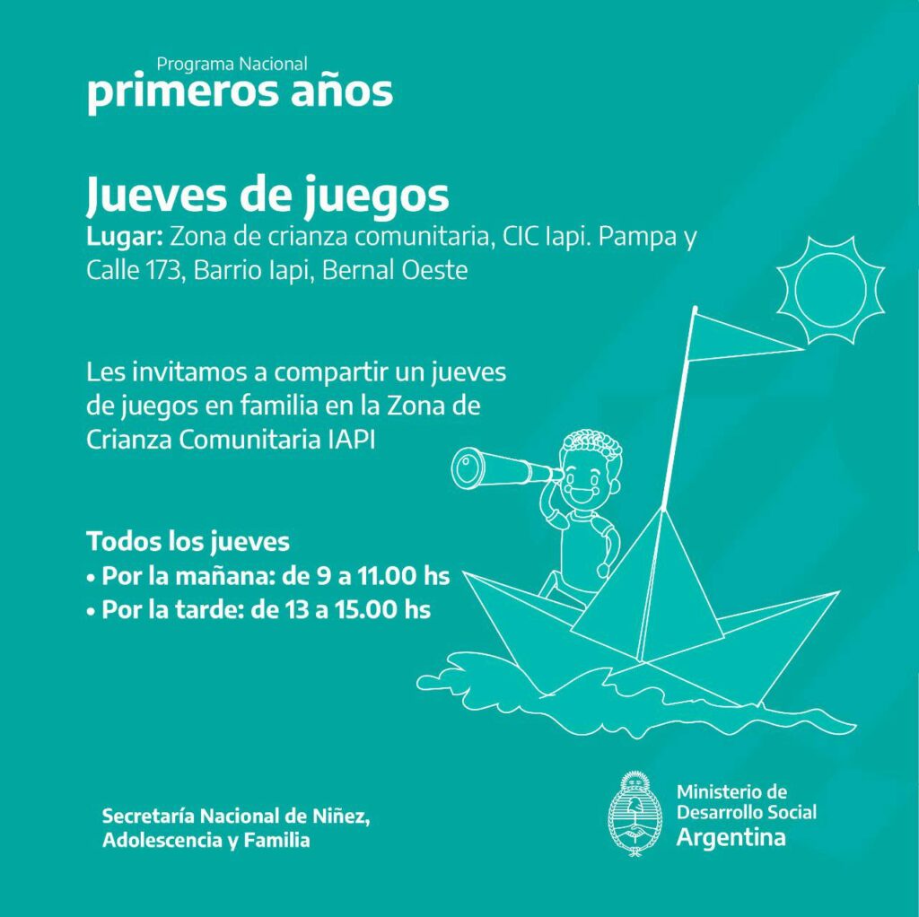 Bernal Cultura/Educ. EN LA IAPI TAMBIEN SE LEE Alberto Moya 19 de abril de 2022 No hay comentarios Desde el Barrio IAPI, de Bernal Oeste, acompañan la crianza de los niños juntos a su familia en el taller de primeros años con lecturas y juegos. Este es el cronograma: Espacio publicitario