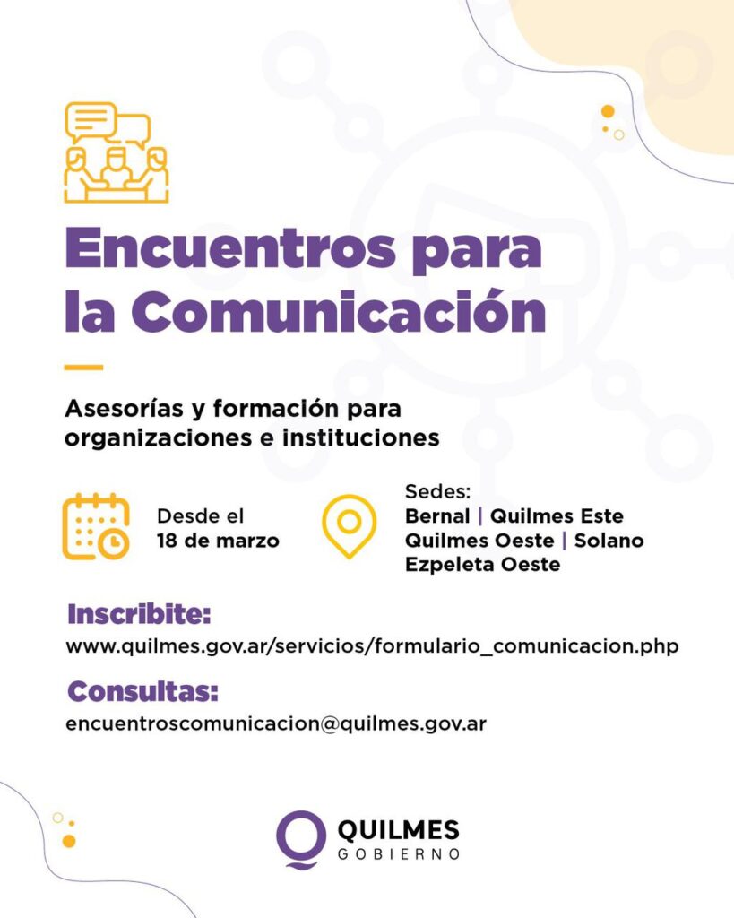 Para consultas e información: encuentroscomunicacion@quilmes.gov.ar