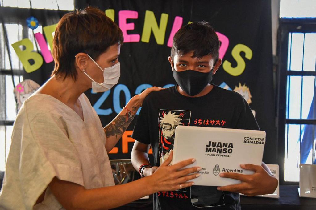 «Esta computadora es una herramienta de estudio y queremos que la utilicen para que puedan desarrollar todas sus capacidades y creatividad. Para nosotros la educación es un pilar, pero para que todos y todas podamos tener educación, primero hay que lograr ir elevando el piso de igualdad. Y el Estado, con un esfuerzo enorme, viene a poner en igualdad de condiciones a todos y todas para que puedan estudiar»