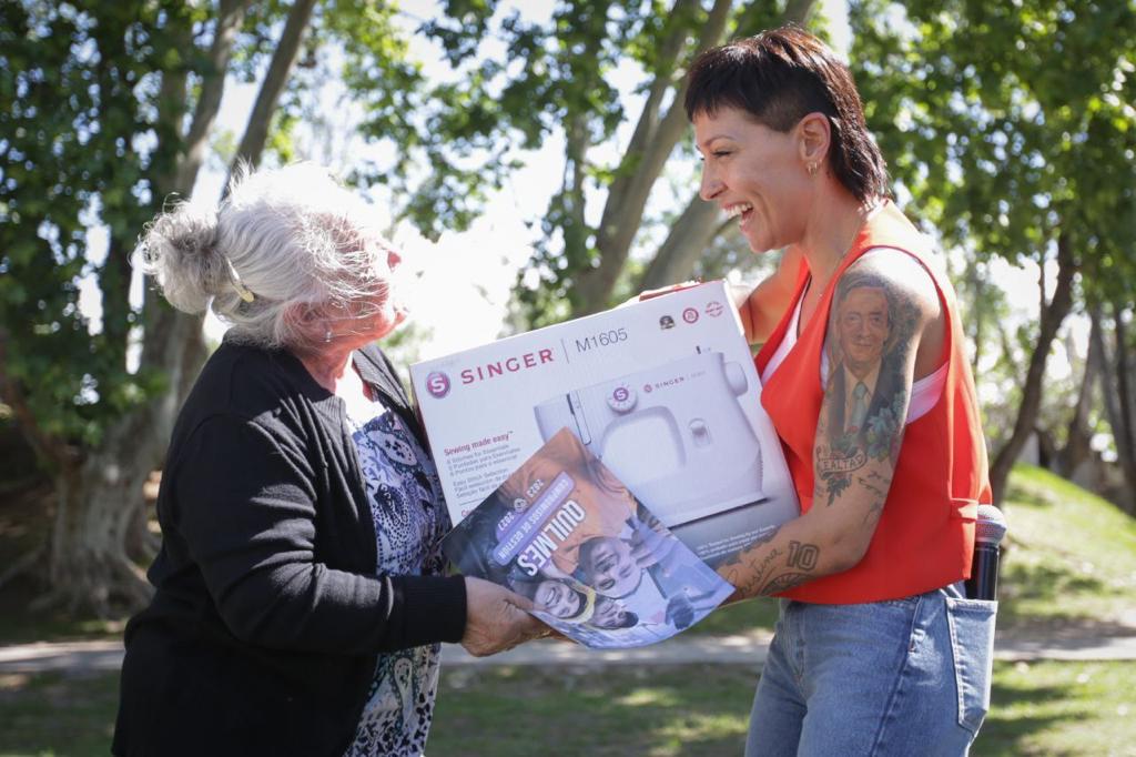 «Estos momentos de la gestión son de alegría, donde una puede dar respuestas concretas ante tantas situaciones que demandan poder tener herramientas de trabajo, que van a potenciar lo que ustedes tienen como capacidad o habilidades. Y que pueden hacer que complementemos los ingresos para el bienestar de nuestras familias. Esto tiene que ver con uno de los objetivos que tenemos en nuestra gestión, de ir abordando y dando respuestas a muchos de los problemas que tenemos como comunidad, pero como Estado presente queremos estar acompañando a cada uno de ustedes»