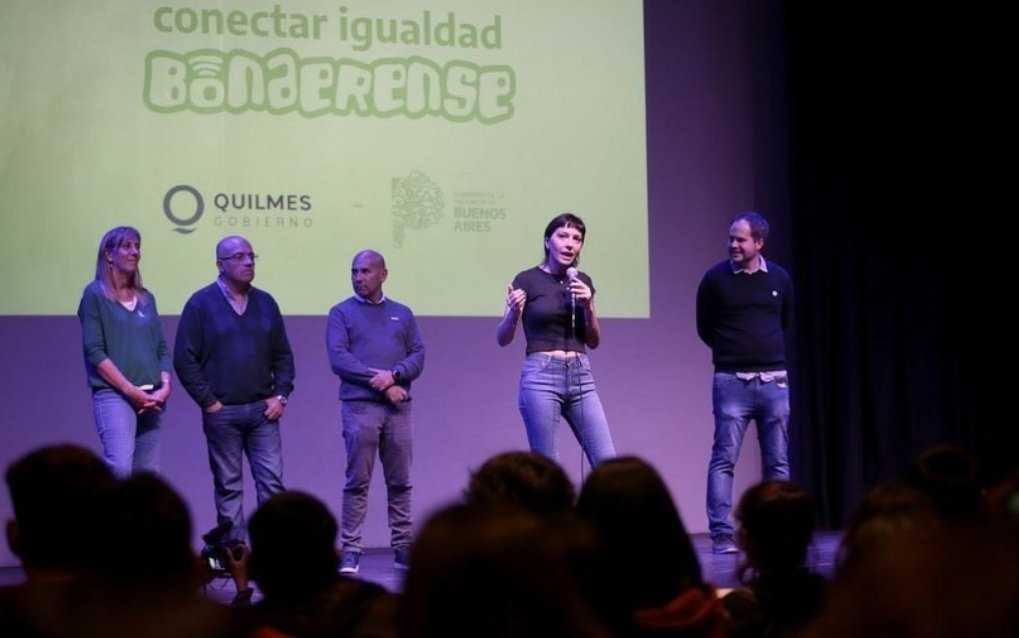 La intendenta de Quilmes participó este viernes en la Asociación Cultural y Biblioteca Popular Mariano Moreno de Bernal, en Belgrano 450, de la entrega de 190 netbooks a jóvenes de 6º año de seis escuelas secundarias del distrito, en el marco del programa Conectar Igualdad, propiciado por el gobierno bonaerense, y visitó el Jardín de Infantes «Sietecolores».