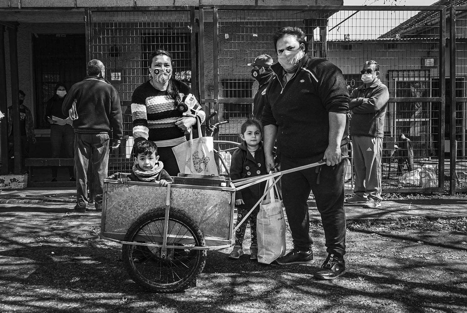 El retrato de una familia tomado por el vecino fotógrafo Fernando Julián Martínez frente a la Biblioteca Popular Monte Chingolo obtuvo el primer premio en dos concursos que este año convocaron a fotógrafos y reporteros gráficos del país a registrar el trabajo de organizaciones territoriales para enfrentar las consecuencias sanitarias, sociales y económicas de la pandemia de Covid-19.