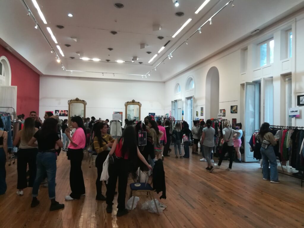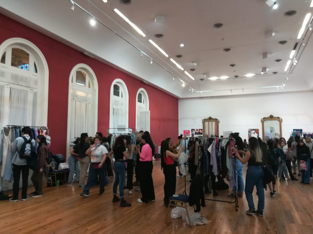 Ropa, carteras, zapatos y accesorios «vintage», y deportivos usados en buen estado, con probadores y música acorde a la edad, en su mayoría jóvenes y adolescentes, en una tarde productiva.