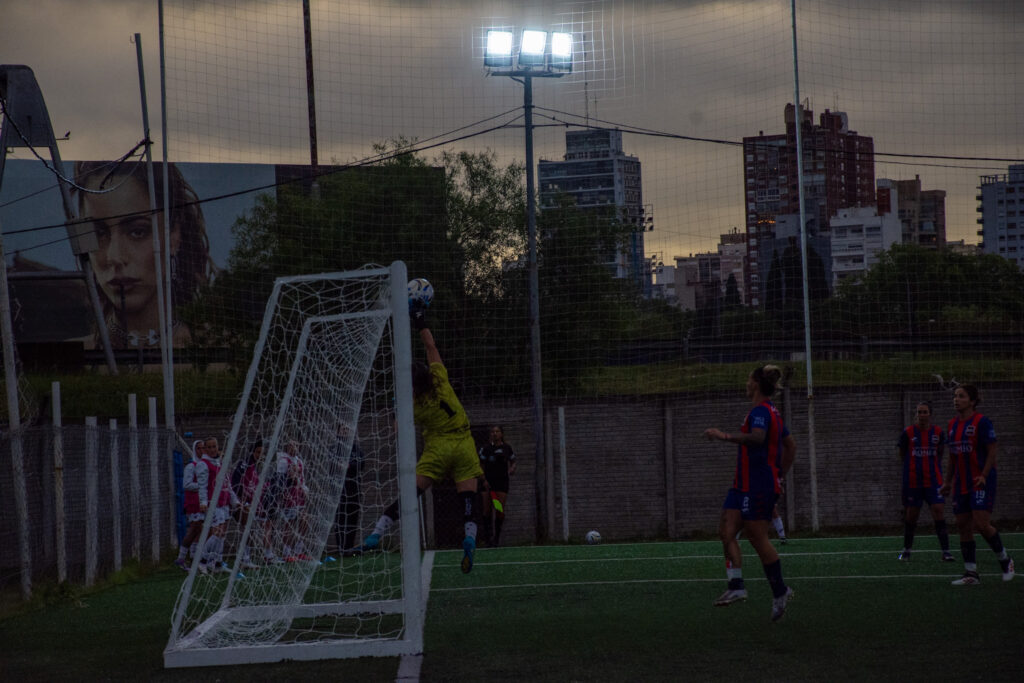 Lorena Zaracho y Cleo Santos fueron las modificaciones que eligió Quiroga para potenciar el sector delantero. A los 40 minutos, el conjunto de San Andrés de Giles desde el córner nació la ilusión de la visita, la pelota cayó en área de Maia Vilalta que en dos tiempos y con suspendo logró contener el balón para mantener su arco en cero.