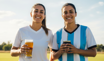 El vaso de cerveza en la mano de la jugadora es porque a Quilmes le dicen «las cerveceras». Simplemente por eso.