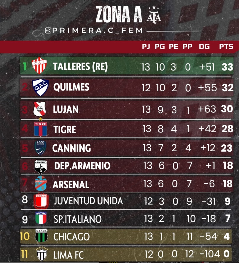 Arsenal: 1-Morena Ojeda, 4-Antonella Gutiérrez, 2-Melina Maiele, 6-Maria Gómez, 3-Ariana Domínguez, 5-Maia Brandan, 8-Melina Nino, 7-Abril Márquez, 9-Rocio Amarillo, 10-Lara Pereyra, 11-Priscila Piscione.