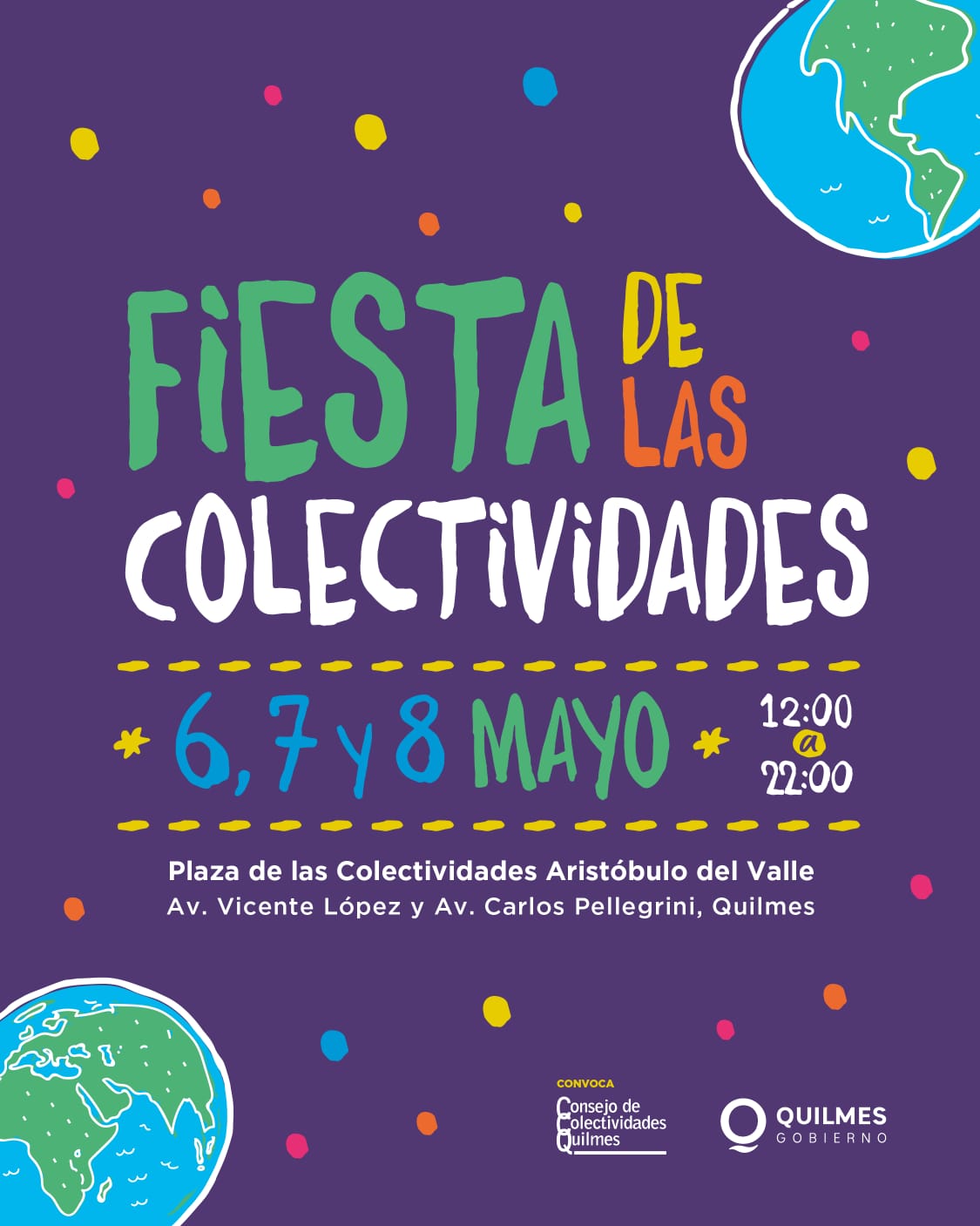 La Fiesta de las Colectividades tendrá lugar del 6 al 8 de mayo en la plaza Aristóbulo del Valle (Carlos Pellegrini y Vicente López), de Quilmes Oeste, con entrada libre y gratuita.