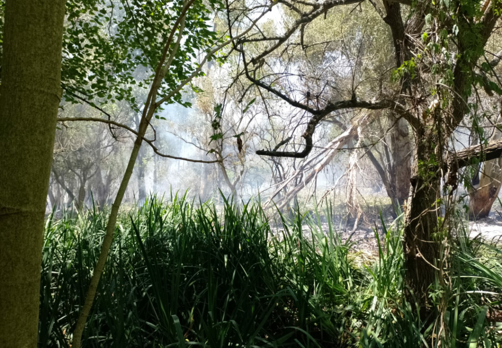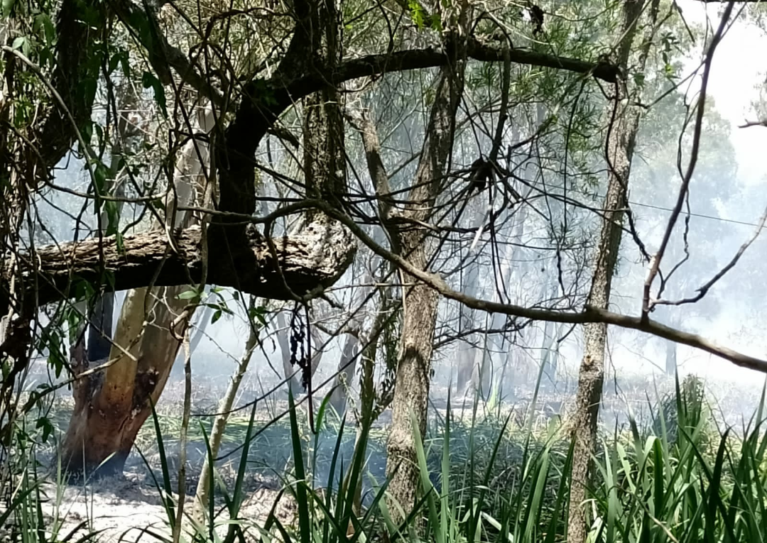 Bomberos de Quilmes acudieron con camión cisterna y personal en apoyo a los de Berazategui, para extinguir el fuego que abrasa, desde hace unas 40 horas, parte de reserva natural que conforman pastizales autóctonos, eucaliptos y cañaverales, con la fauna que albergan.