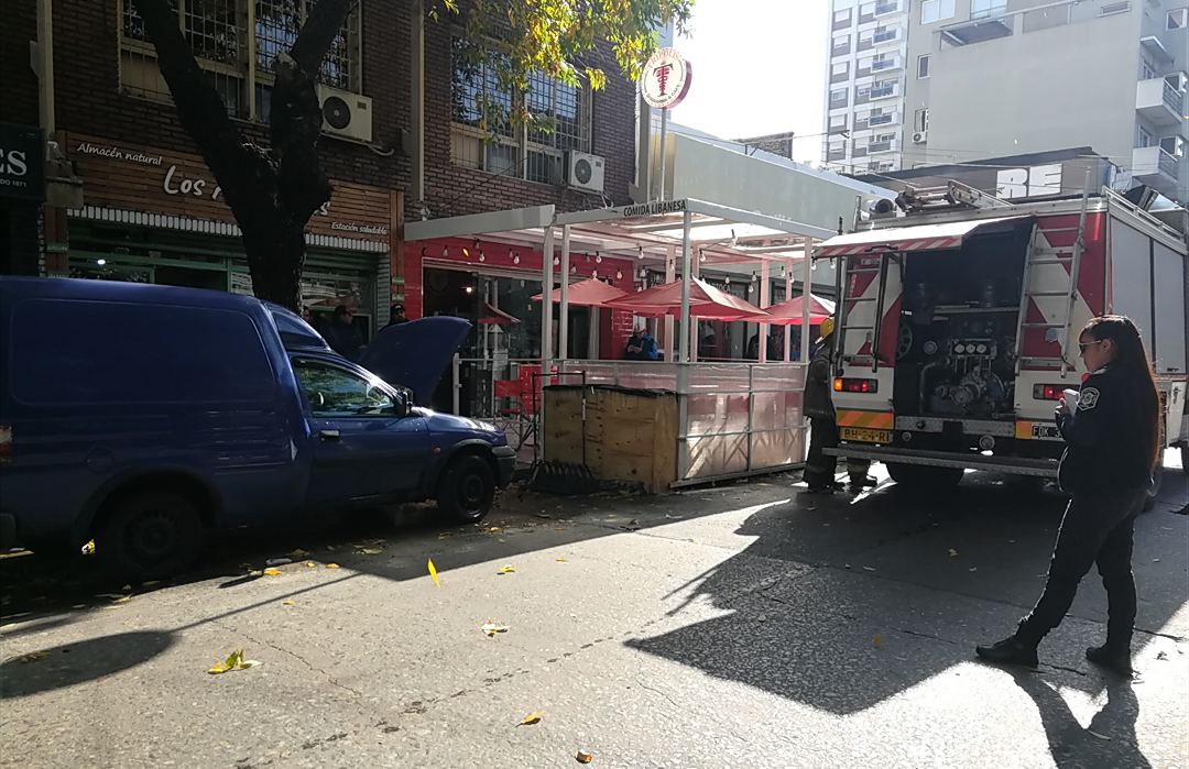 Principio de incendio en un vehículo utilitario, a las 10.20, en Garibaldi y Lavalle. Se debió a un desperfecto en el sistema eléctrico.