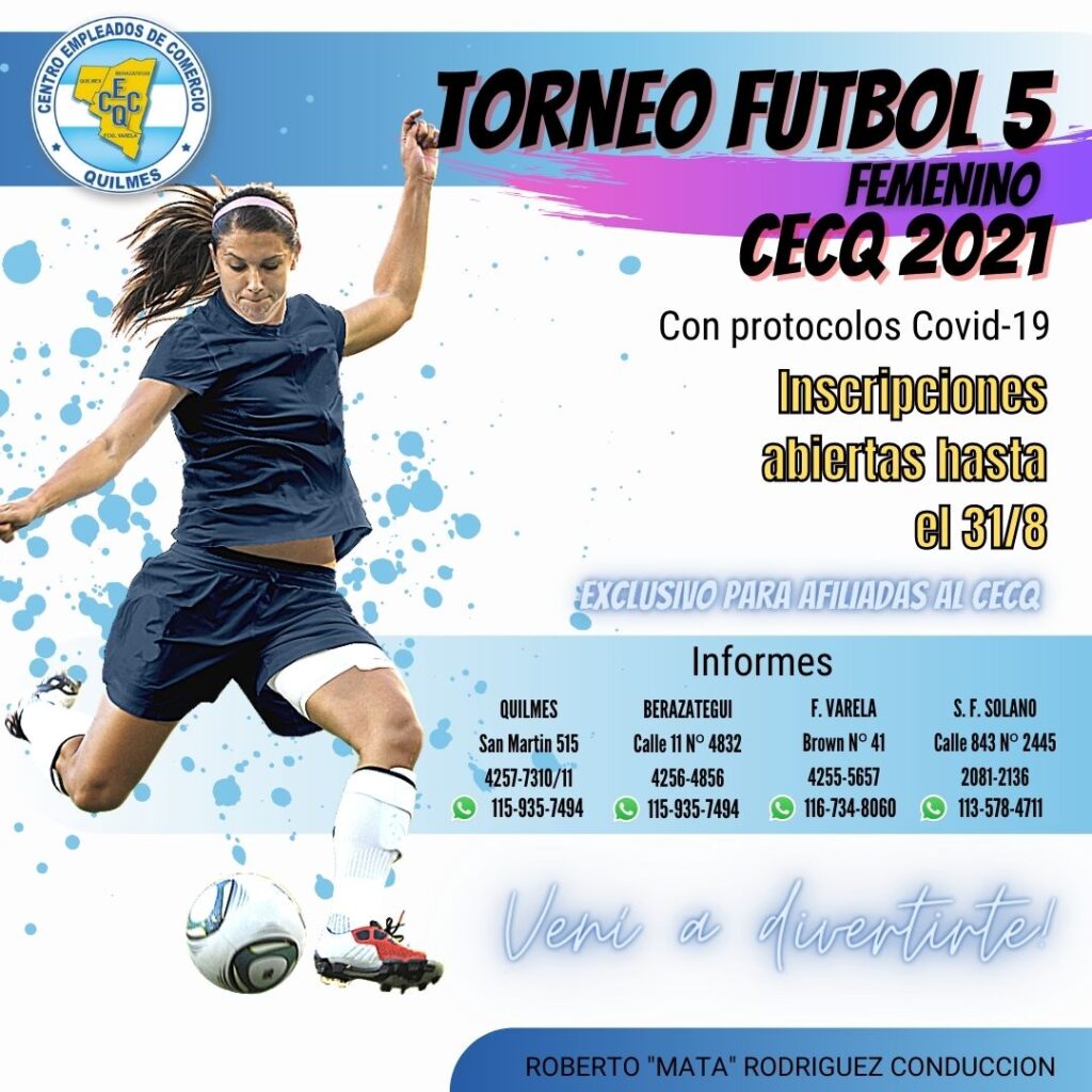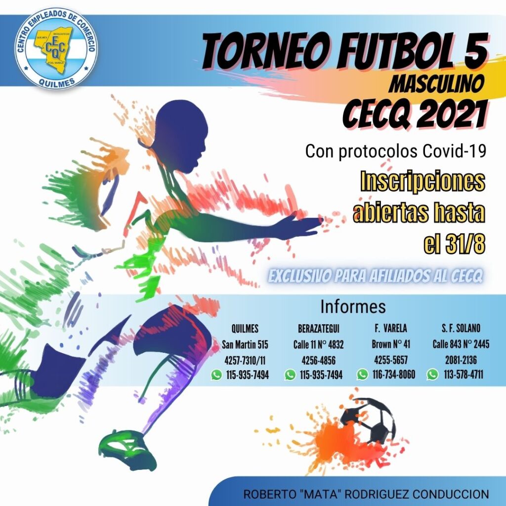 El Centro de Empleados de Comercio de Quilmes, Varela y Berazategui, cuyo secretario general es Roberto Mata Rodríguez, organiza su clásico torneo de fútbol 5. Es sólo para trabajadores con afiliación que pueden inscribirse hasta fin de mes.