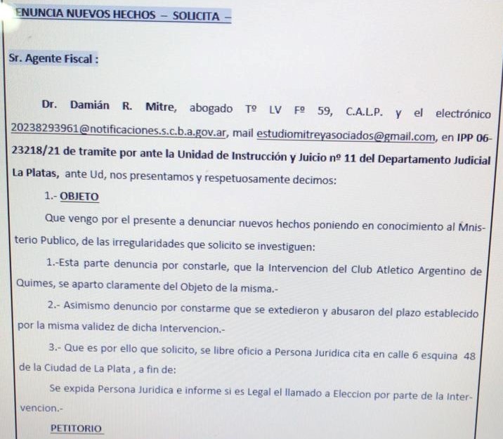 «Para que llegue a manos de la Justicia es porque se agotaron todas las instancias previas. Los socios llevan varios años aguantando malos manejos de la institución. Cada vez que había una irregularidad, ellos se manifestaron e impugnaron asambleas de las que no les permitían participar y en las que daban quorum gente de dudosa participación societaria. El último balance aprobado data de hace cuatro años atrás. Se hicieron presentaciones en la Inspección General de Justicia (IGJ) y denuncias penales en las cuales se investiga el delito de administración fraudulenta».