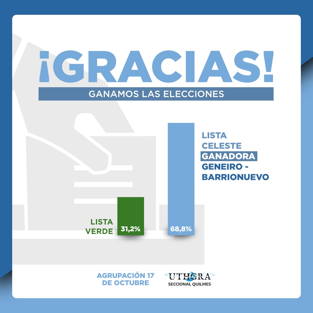 Argentino Tito Geneiro revalidó la conducción de la UTHGRA en la Seccional Quilmes.