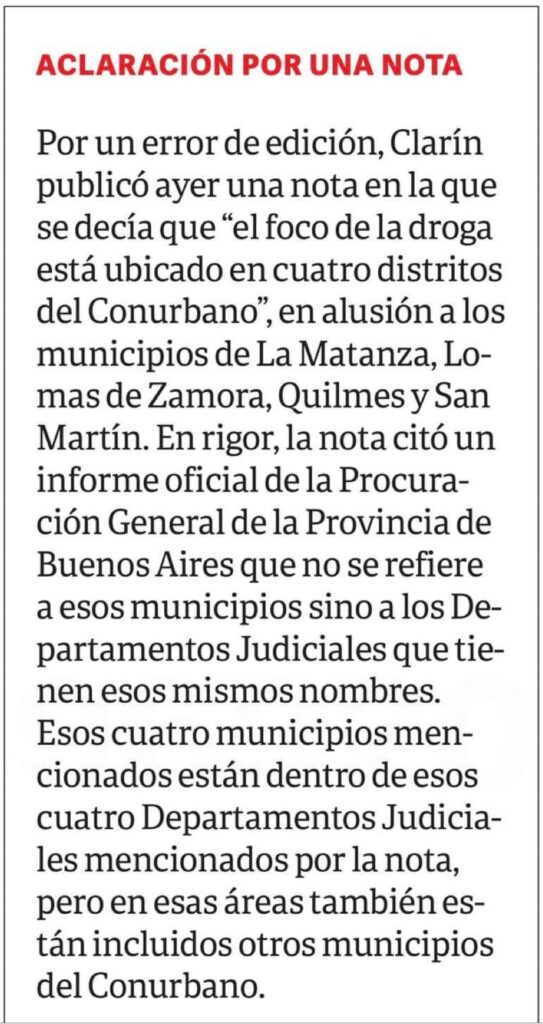 Luego de la publicación de estas notas, Clarín corrigió lo que señalamos aquí como falta de precisión:
