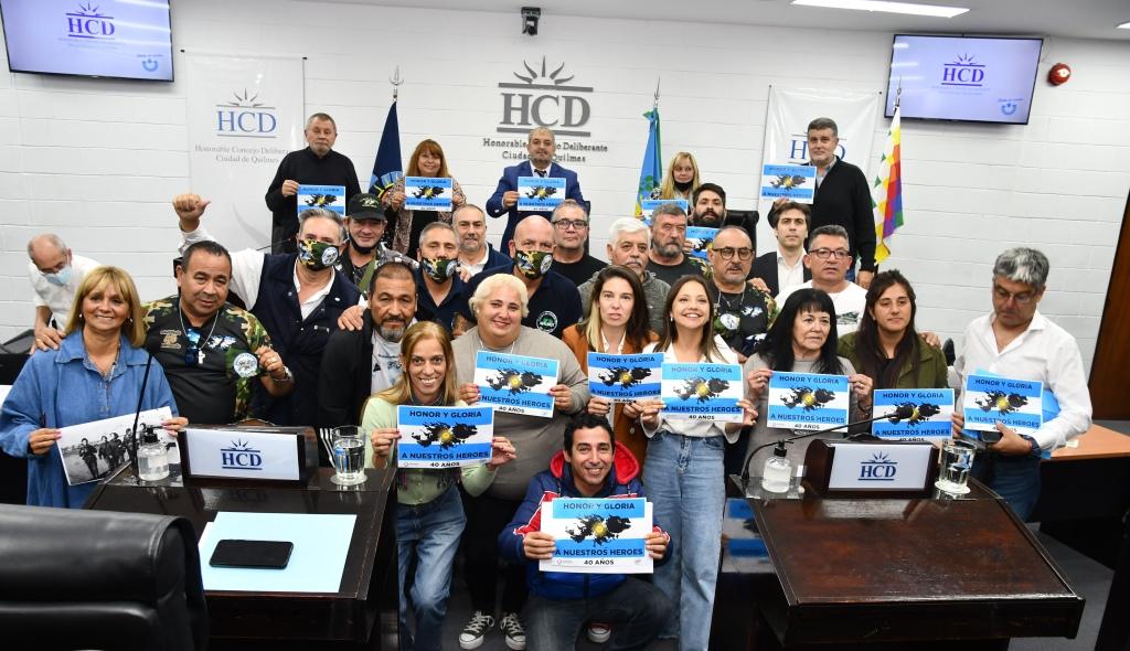 El Concejo Deliberante homenajeó este mediodía a los Veteranos de Guerra de Quilmes. Fabio Baez, presidente del Cuerpo expresó su gratitud a los combatientes quienes fueron aplaudidos de pie en el recinto.
