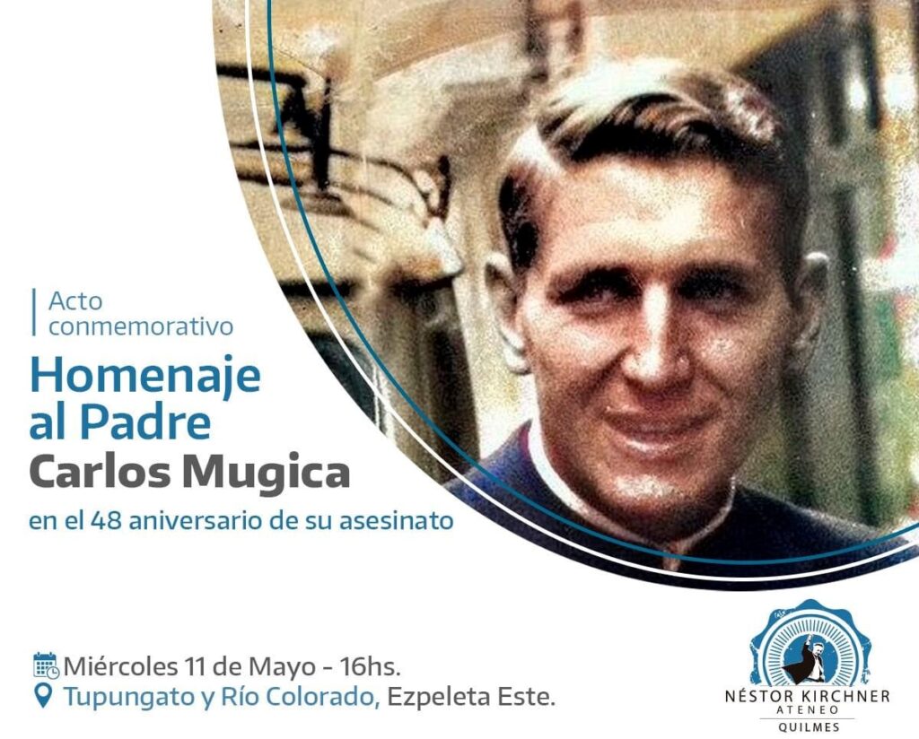 Se homenajeó al cura Carlos Mugica en un nuevo aniversario de su asesinato por parte de la ultraderechista Triple A en 1974, organizada por el Ateneo Néstor Kirchner en Ezpeleta y de la cual participaron los Curas en Opción por los Pobres, Adrian Gomez y Adrian Bergallo: