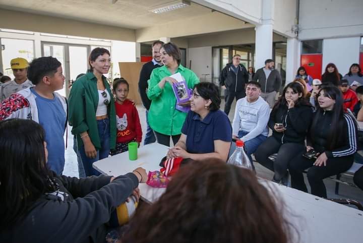 «Aprovechamos para charlar un rato con los y las estudiantes de la EET 8 sobre la importancia de cuidar los derechos y defender la educación pública».