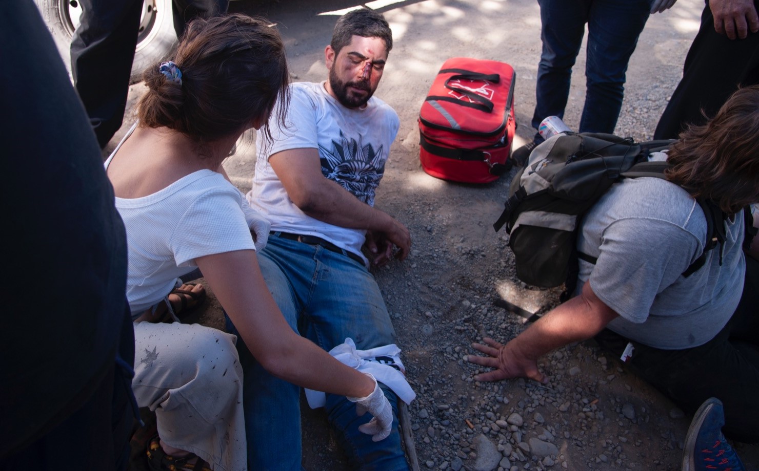 En el trayecto del camino vecinal, Luna y Fierro auxiliaban a Sverdlik que estaba herido; Hernández lo pateó en dos oportunidades y golpeó con un palo en la cabeza a Fierro, provocándole una herida sangrante, relató Arrien.