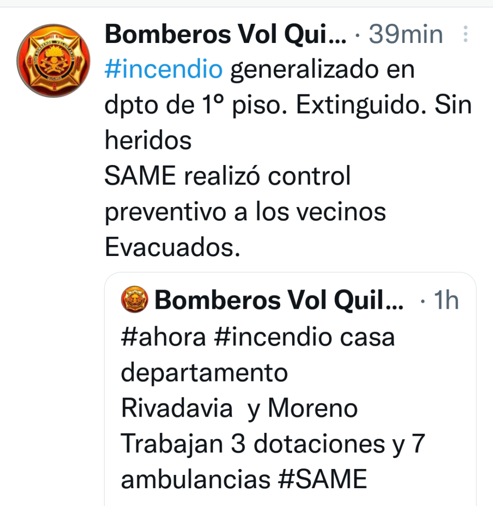 Cerca de la hora 1 de este domingo comenzó a incendiarse un departamento en el primer piso del edificio de peatonal Rivadavia y Moreno. Los bomberos lo anunciaban en Twitter.