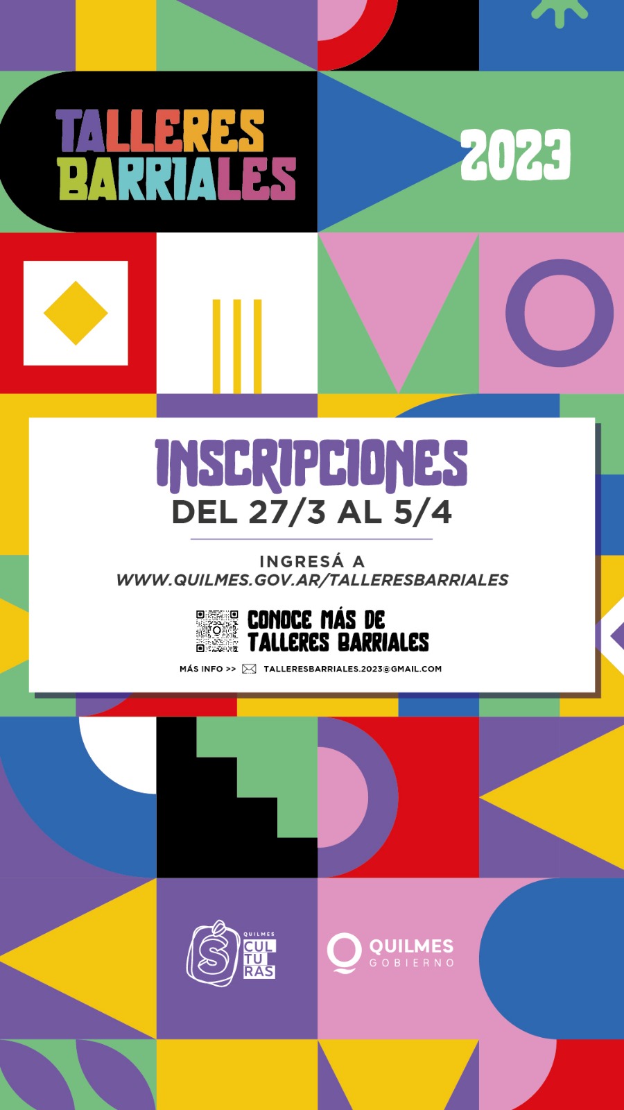 A los Talleres podrán inscribirse los vecinos y vecinas de Quilmes mayores de 18 años, a través del formulario de inscripción. Los menores de 18 años deberán ser registrados por un tutor a cargo. En el caso de los talleres destinados a niños y niñas, tendrán que ser inscriptos por un mayor o tutor a cargo, y se permitirán hasta dos niños por pantalla.