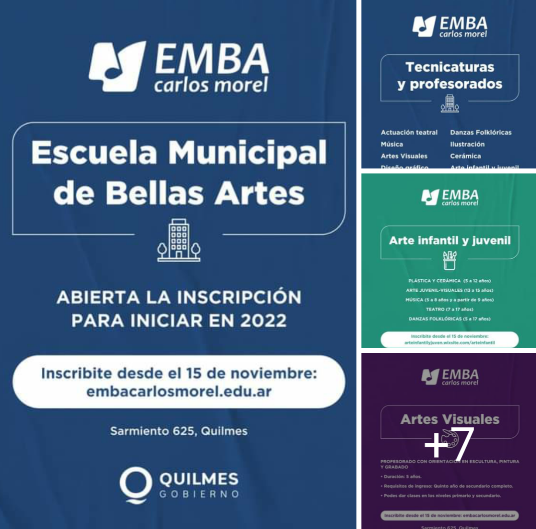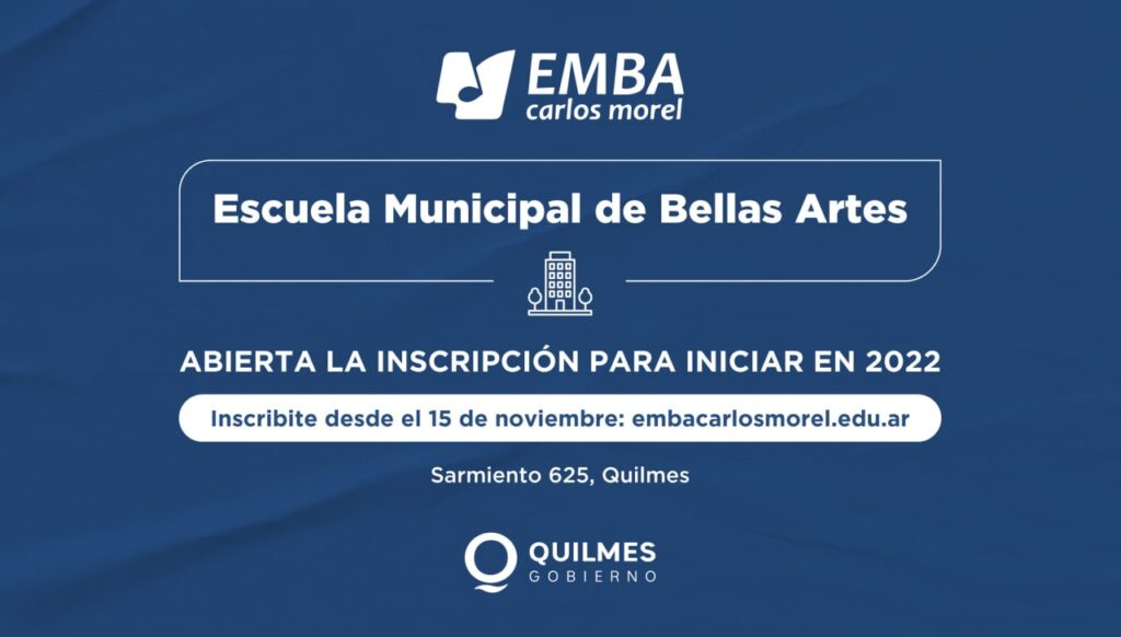 El Municipio confirmó que desde el lunes 15 está abierta la inscripción 2022, en la Escuela Municipal de Bellas Artes Carlos Morel, en Sarmiento 625, de Quilmes Centro.