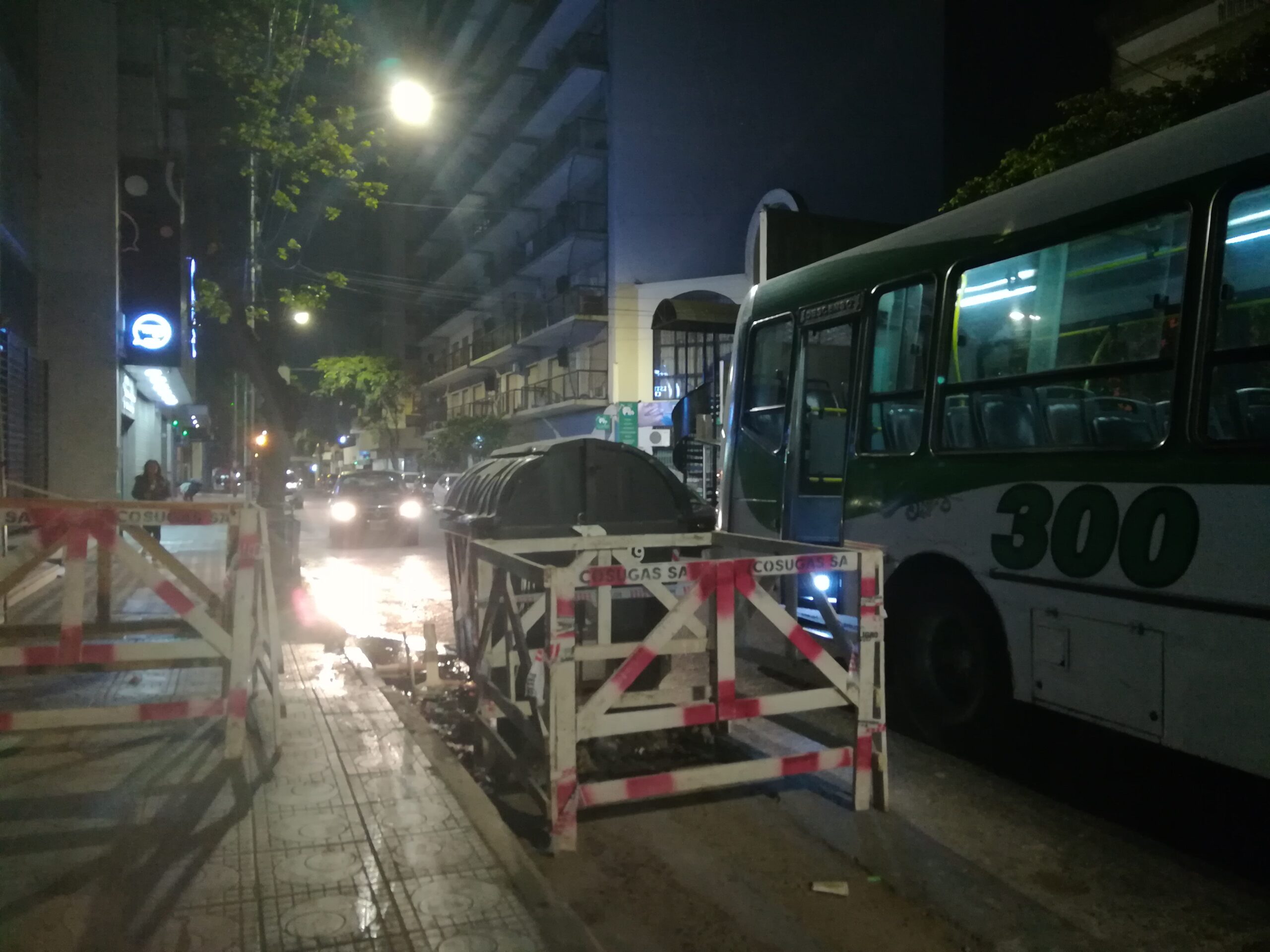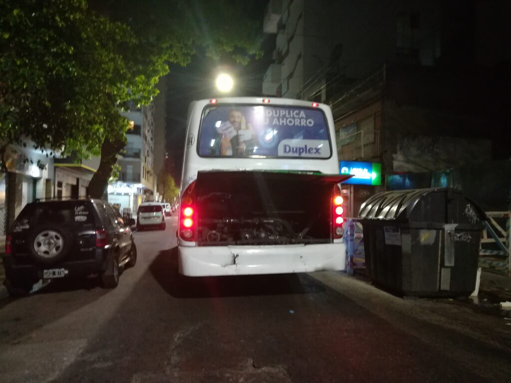 Una unidad de MOQSA, «el 300», se rompió y fue dejado en medio de la calle Garibaldi, entre San Martín y Moreno, este lunes, alrededor de la hora 21.