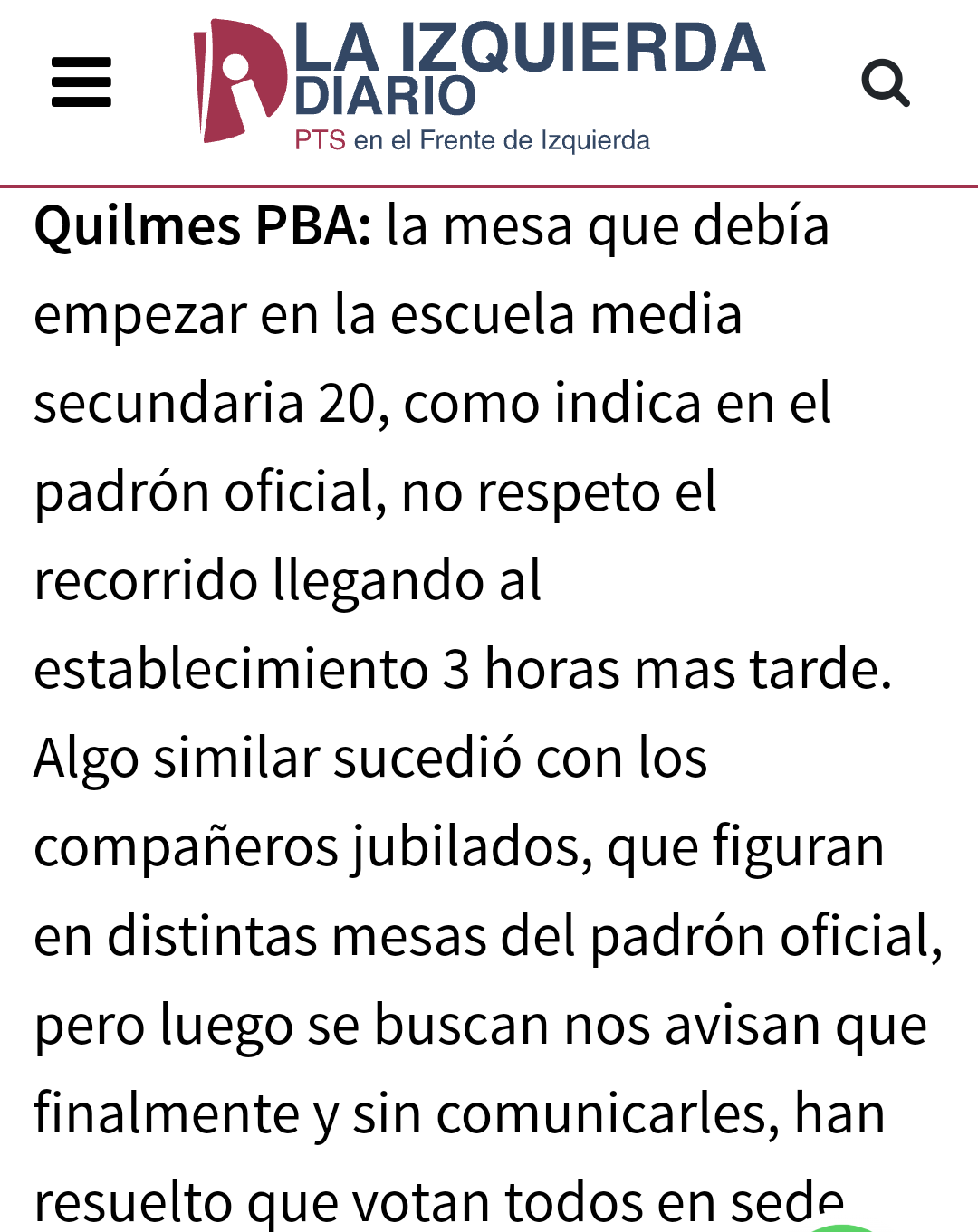 La Izquierda a través de su órgano de difusión dio a conocer la disconformidad con respecto a las irregularidades en las elecciones de CTA T, de este miércoles 9, que se replicaron en varias provincias.