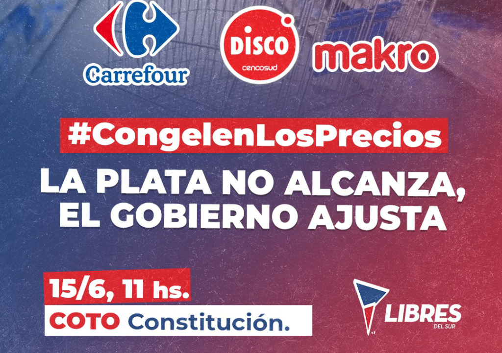Gremiales Politica Quilmes Este JORNADA DE PROTESTA: BAJEN LOS PRECIOS Ana Santillana 15 de junio de 2023 2 comentarios Fotos Gonzalo Abdeneve Esta mañana se produjeron varias protestas, en distintos supermercados, contra la suba de precios. La organización Libres del Sur está en Coto Quilmes, en el marco de la jornada nacional de protesta.