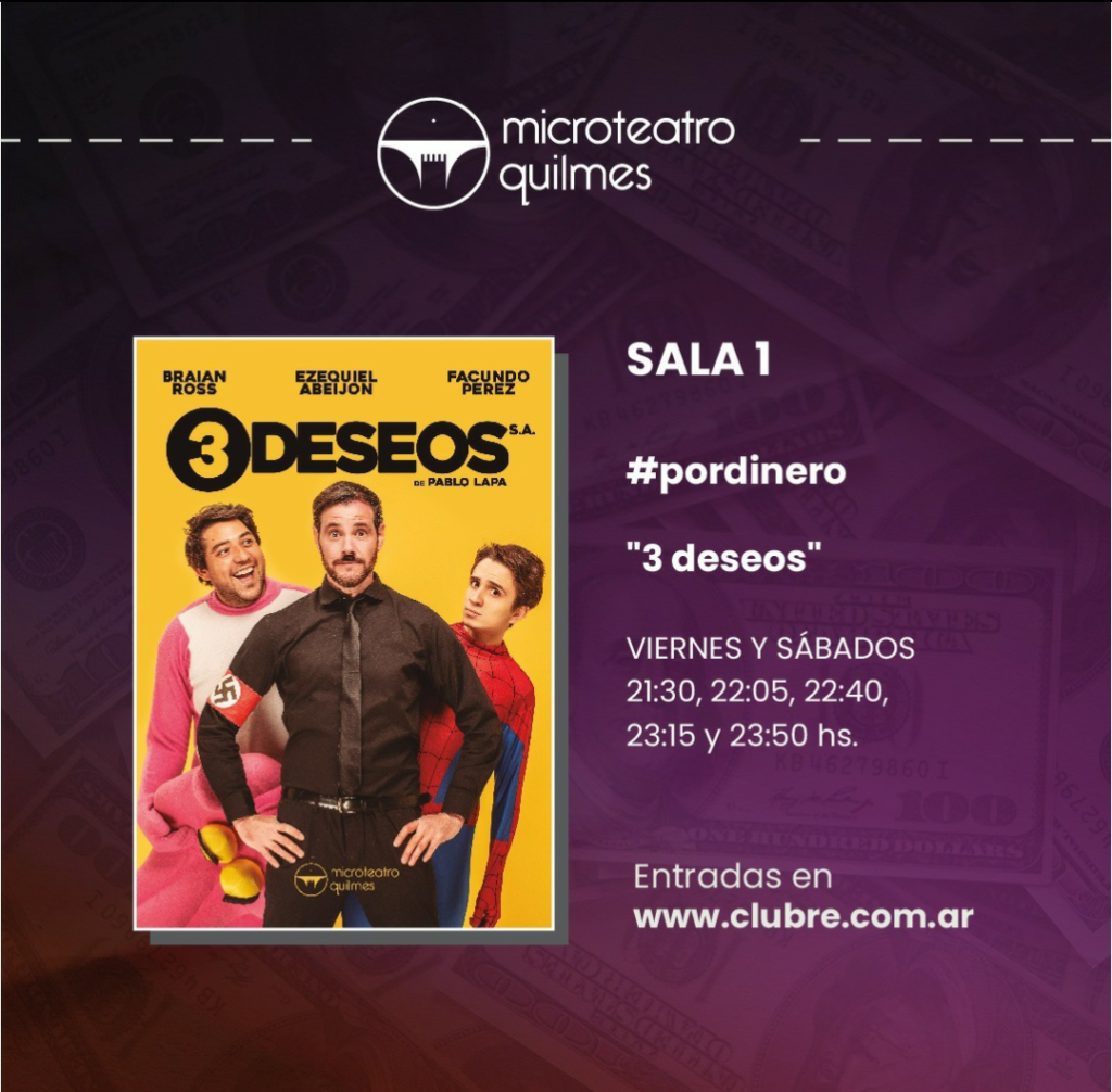 Microteatro Quilmes renueva su cartelera con cuatro obras que abordarán durante todo el mes de julio la temática “Por dinero”. Lo novedoso es que los elencos están conformados por artistas de zona sur, quienes estarán al frente durante los próximos cuatro fines de semana, del innovador formato teatral que sigue marcando tendencia en las noches de viernes y sábados.