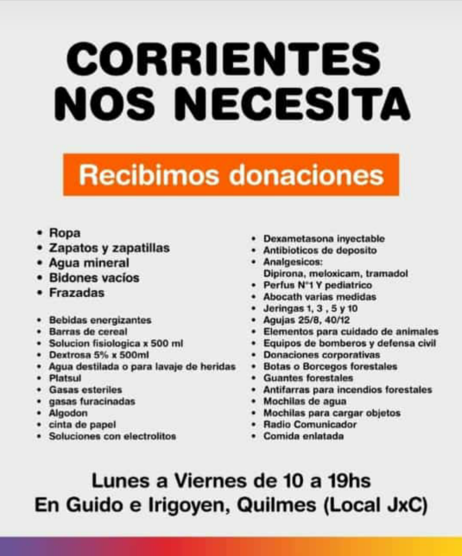 Politica JUNTOS RECOLECTA POR CORRIENTES Ana Santillana 21 de febrero de 2022 No hay comentarios En el local de Juntos, de la calle Hipólito Yrigoyen y Guido, desde este lunes, de 10 a 19, recibirán ayuda para enviar a Corrientes, donde se destruyeron escuelas, casas particulares, hay animales heridos. Club Sarmiento