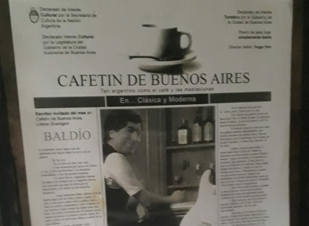 Durante muchos años distribuyó en cafés notables e históricos, un periódico de cultura, de su creación, que era sólo una gran hoja de papel, pero de tal interés que Horacio Ferrer, el poeta, le pidió un sector de la hoja para publicar sus obras y lo mandaba a Europa.