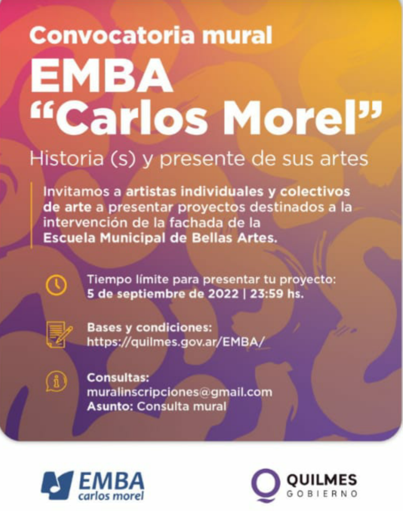 Invitamos a artistas individuales y colectivos de arte a presentar proyectos destinados a la intervención de la fachada de la EMBA Carlos Morel.