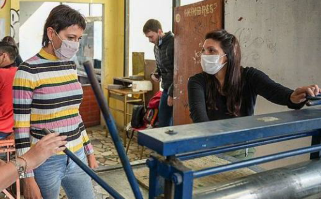 En esta nueva etapa, después de la cuarentena que dejó al edificio desierto, al que podían acceder sólo los directivos, se encontraron, docentes y alumnos en su regreso a la presencialidad, con que faltaban elementos, mobiliario, útiles de arte, instrumentos, ya que nunca se contó con custodia. En abril y mayo se hicieron asambleas que reunieron a la comunidad educativa, centro de estudiantes y a todo aquel a quien le interesara la defensa de la escuela pública. Porque, recordemos, es un patrimonio municipal, aunque cuenta con una coparticipación provincial para el pago de una parte del salario de profesores.