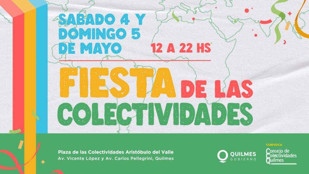 El Municipio y el Consejo de Colectividades invitan a disfrutar de una nueva edición de la Fiesta de las Colectividades, el sábado 4 y domingo 5 de 12 a 22, en la plaza de Pellegrini y Vicente López, con entrada libre y gratuita.