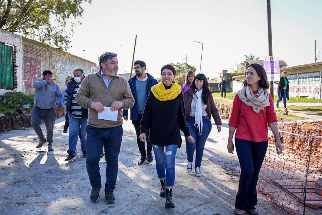 Mayra Mendoza supervisó este jueves el avance de las obras de pavimentación con hormigón que se están realizando en los barrios Mariano Moreno, Villa Tomás Torre, Villa Sobral y Arrieta, en Ezpeleta, una demanda histórica de los vecinos y vecinas de la zona.