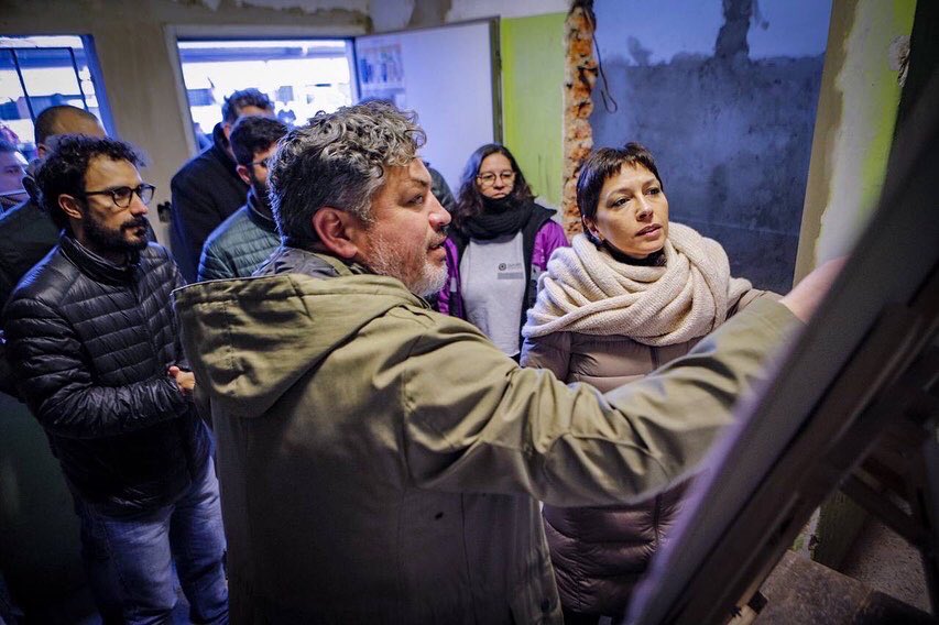 Estuvo junto al titular del área, Sebastián García, y los subsecretarios de Servicios Públicos y Defensa Civil de Quilmes, Silvio Sarti, y de Bases Operativas, Ignacio Castro. En el lugar, Mayra observó los trabajos de refacción que se realizan en el edificio para optimizar la atención al vecino y la gestión de los servicios.