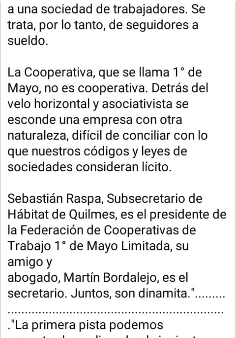 El escándalo desatado por el sitio El Disenso ya derivó en la renuncia del Secretario de Habitat municipal, Sebastián Raspa. No obstante haber dicho que se trataban de mentiras, lo que fue acompañado por una presentación legal por parte del municipio.