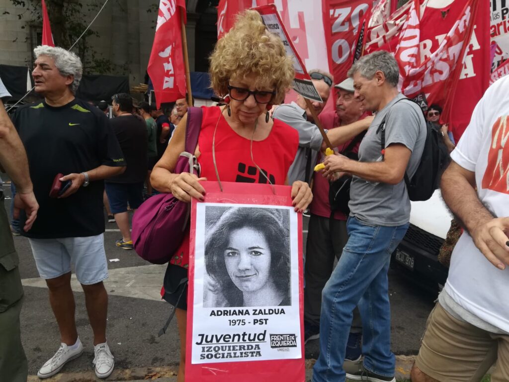 Entre las agrupaciones asistentes, los de Izquierda Socialista recordaron a Adriana Zaldúa (PST), quien en la década del ’70 venía a Quilmes a dar clases populares en los barrios hasta que fue asesinada por la extrema derecha el 5 de septiembre de 1975.