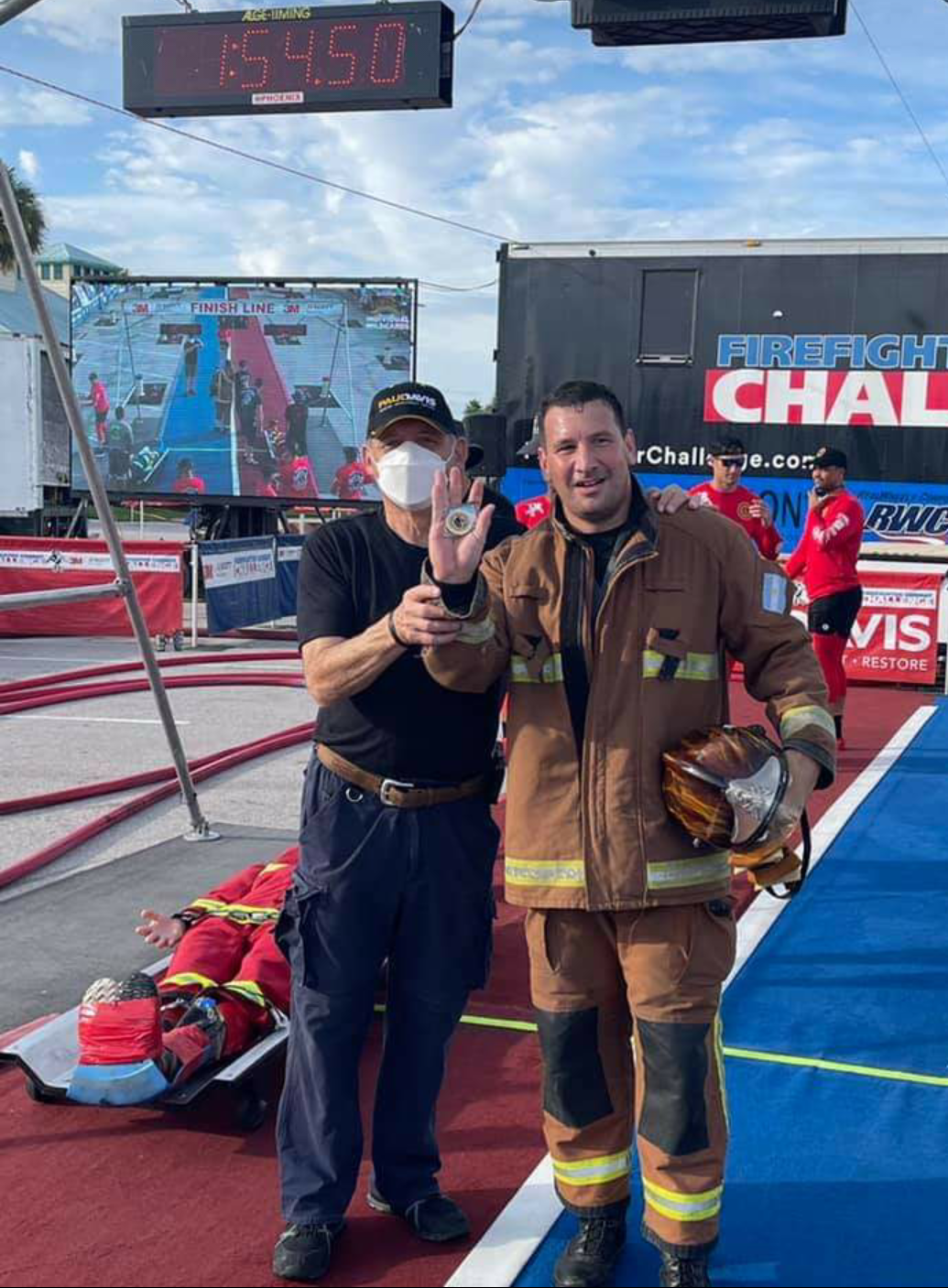 «En el día de hoy, nuestro compañero David Cassani, que se encuentra compitiendo en el mundial de habilidades bomberiles Firefighter Combat Challenge, logró clasificar en el Lions Den, categoría que reúne a los competidores más rápidos del mundo. Felicitaciones David».