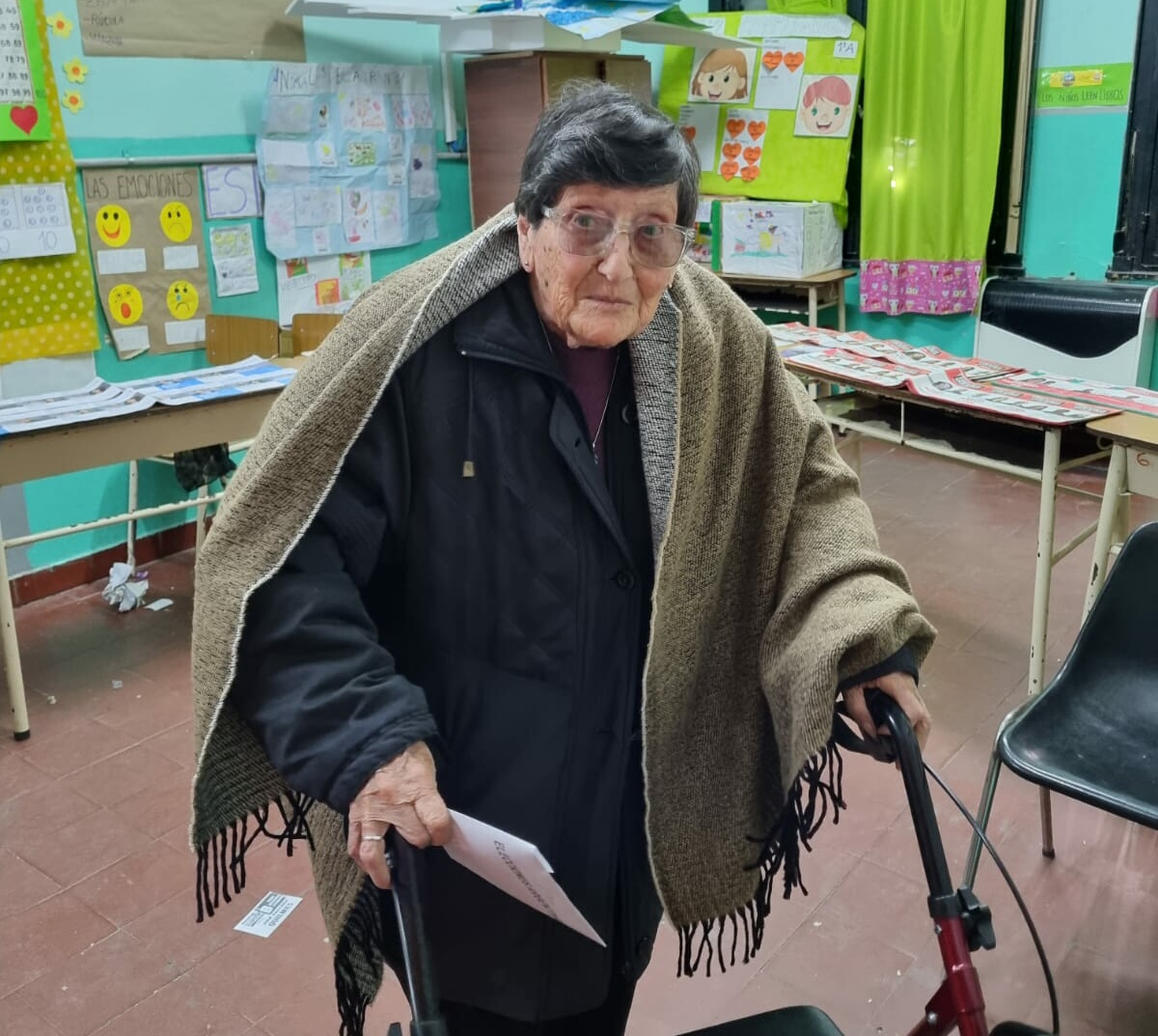 Después de guardar su voto de esperanza por un mundo mejor, por la buena salud de todos y apostando a que ese sobre lleve un destino mejor para su hija, nietas y biznietas, llega ansiosa hasta la urna que la espera, le guiña un ojo y guarda celosa en su interior con el suave roce de la mano materna de María Angélica Paiardi.