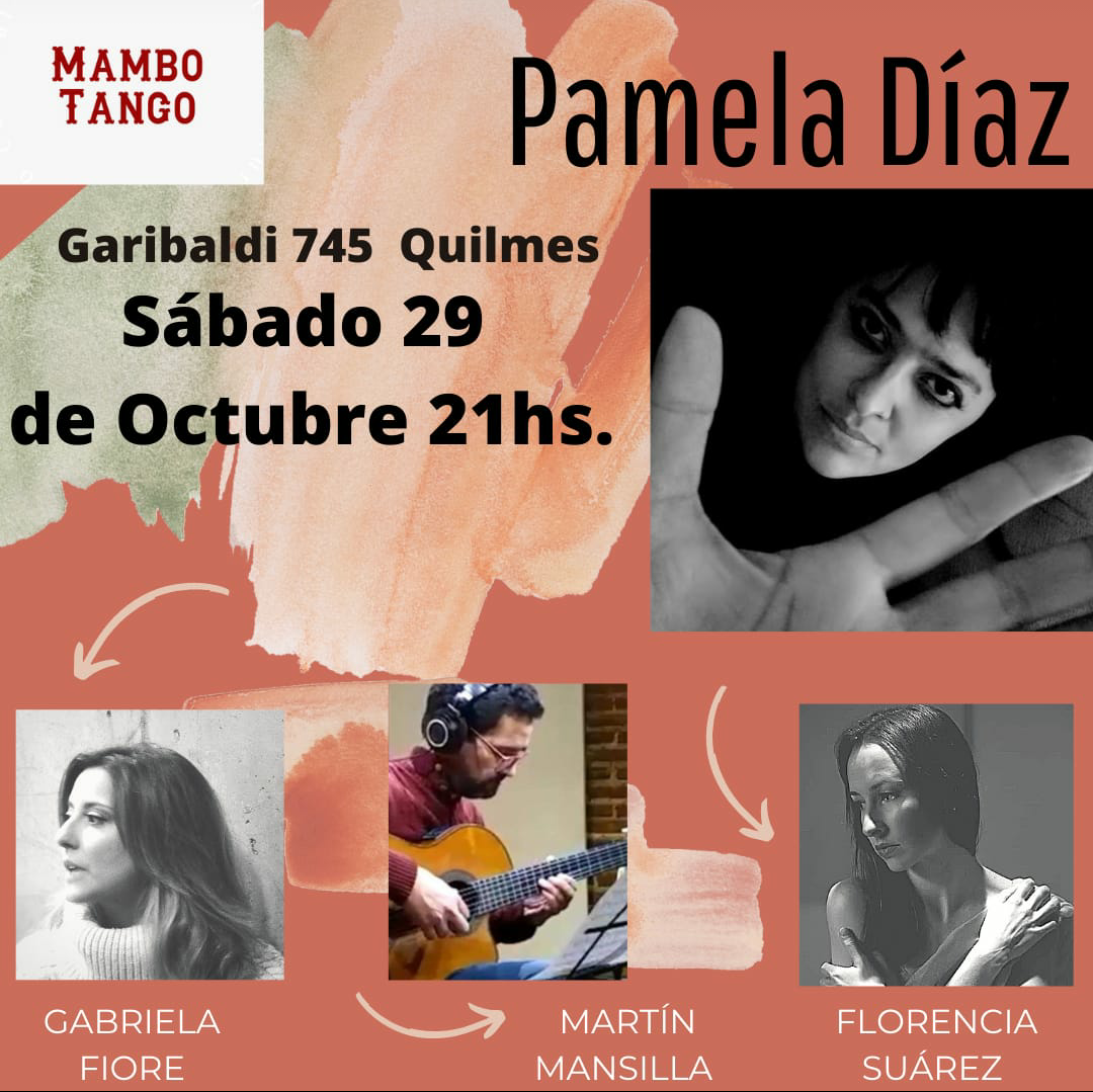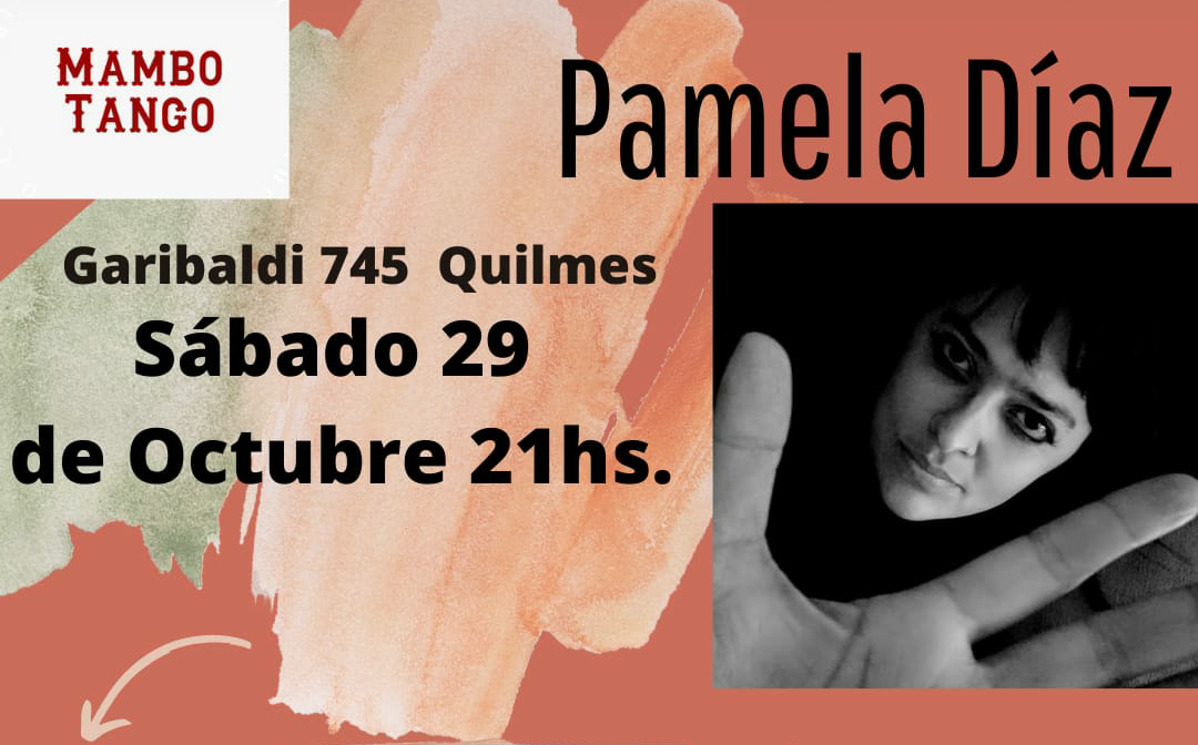 El espacio cultural Mambo Tango recibirá a una notable cantante, autora, artista plástica y productora de Santa Rosa La Pampa: Pamela Díaz. La acompañarán en algunas canciones Gabriela Fiore (voz), Florencia Suárez (voz) y Martín Mansilla (guitarra).