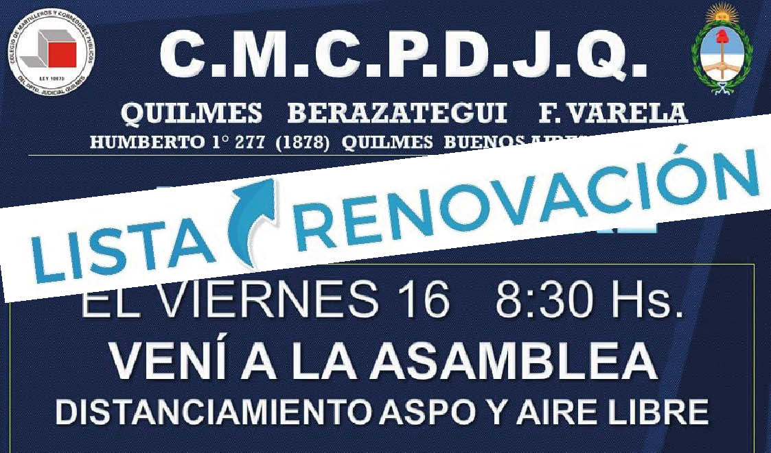 Hace instantes culminó el escrutinio en el Colegio de Martilleros del Departamento Judicial quilmeño, que incluye a Varela y Berazategui.