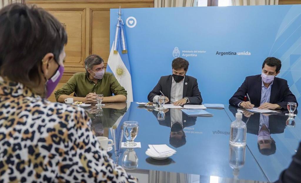 El acto se realizó en el Salón de los Escudos de la cartera de Interior, en Casa Rosada, con el ministro de Obras Públicas, Gabriel Katopodis; el diputado nacional del PRO Cristian Ritondo; la secretaria de Provincias, Silvina Batakis; el secretario de Municipios, Avelino Zurro, y el secretario de Gestión Administrativa del Ministerio de Obras Públicas, Guillermo Sauro.