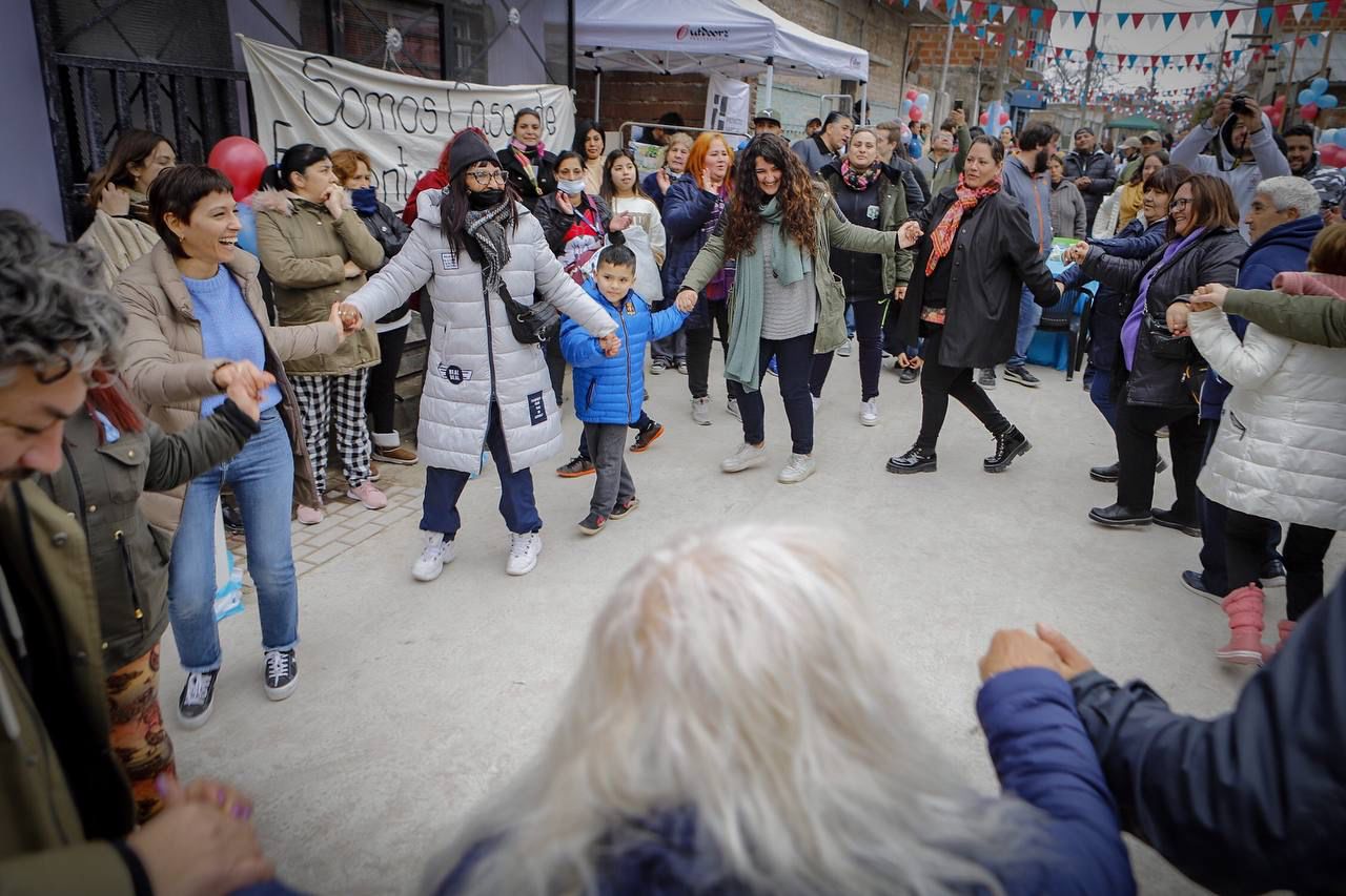 Mayra Mendoza participó junto a la titular de la Secretaría de Integración Socio Urbana (SISU), Fernanda Miño, y el obispo y presidente de Cáritas Carlos Tissera, de la inauguración de obras de infraestructura en el barrio La Loma, de Bernal Oeste. Además, compartió un locro con los vecinos y vecinas, y anunció mejoras en toda la zona.